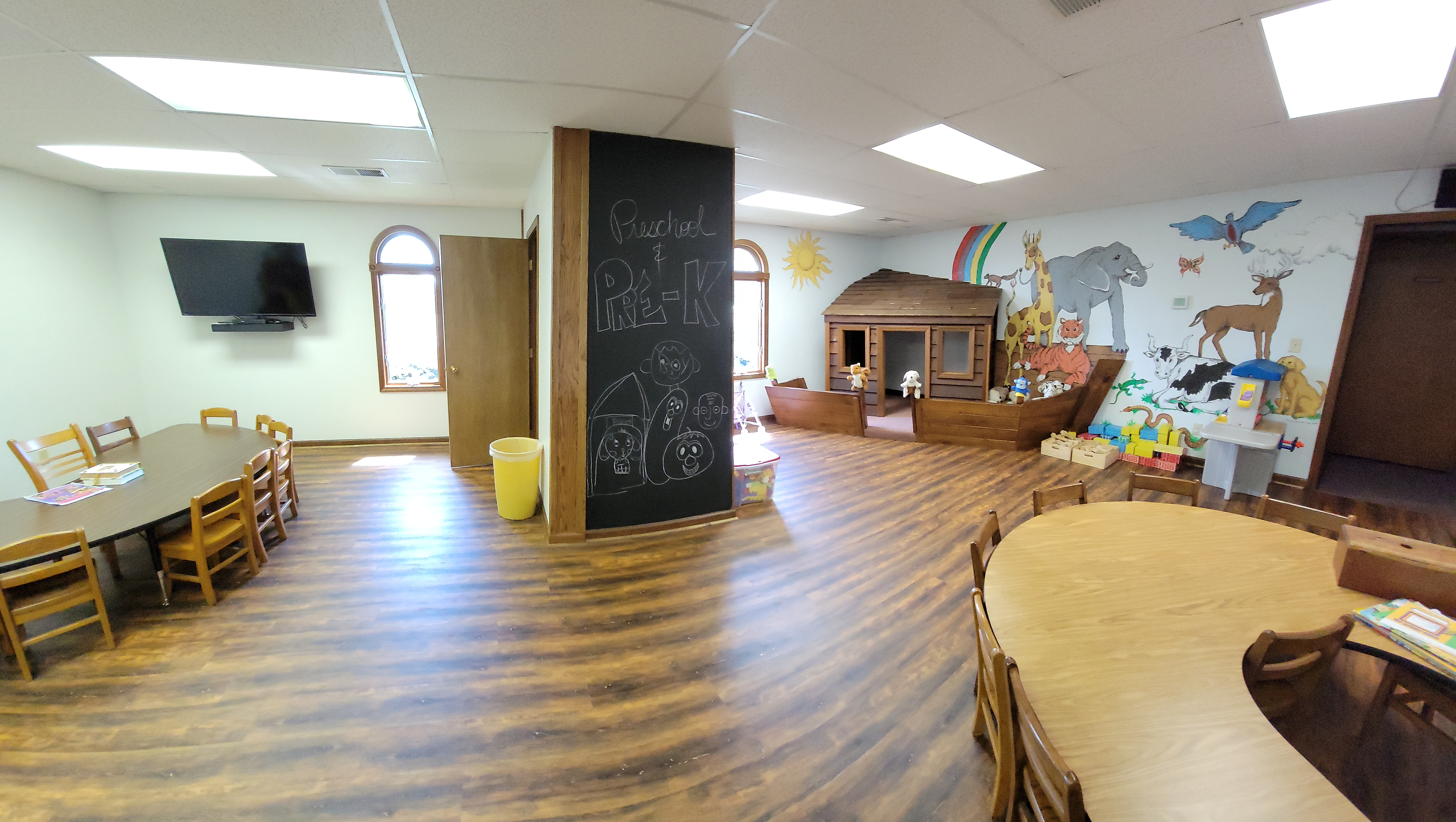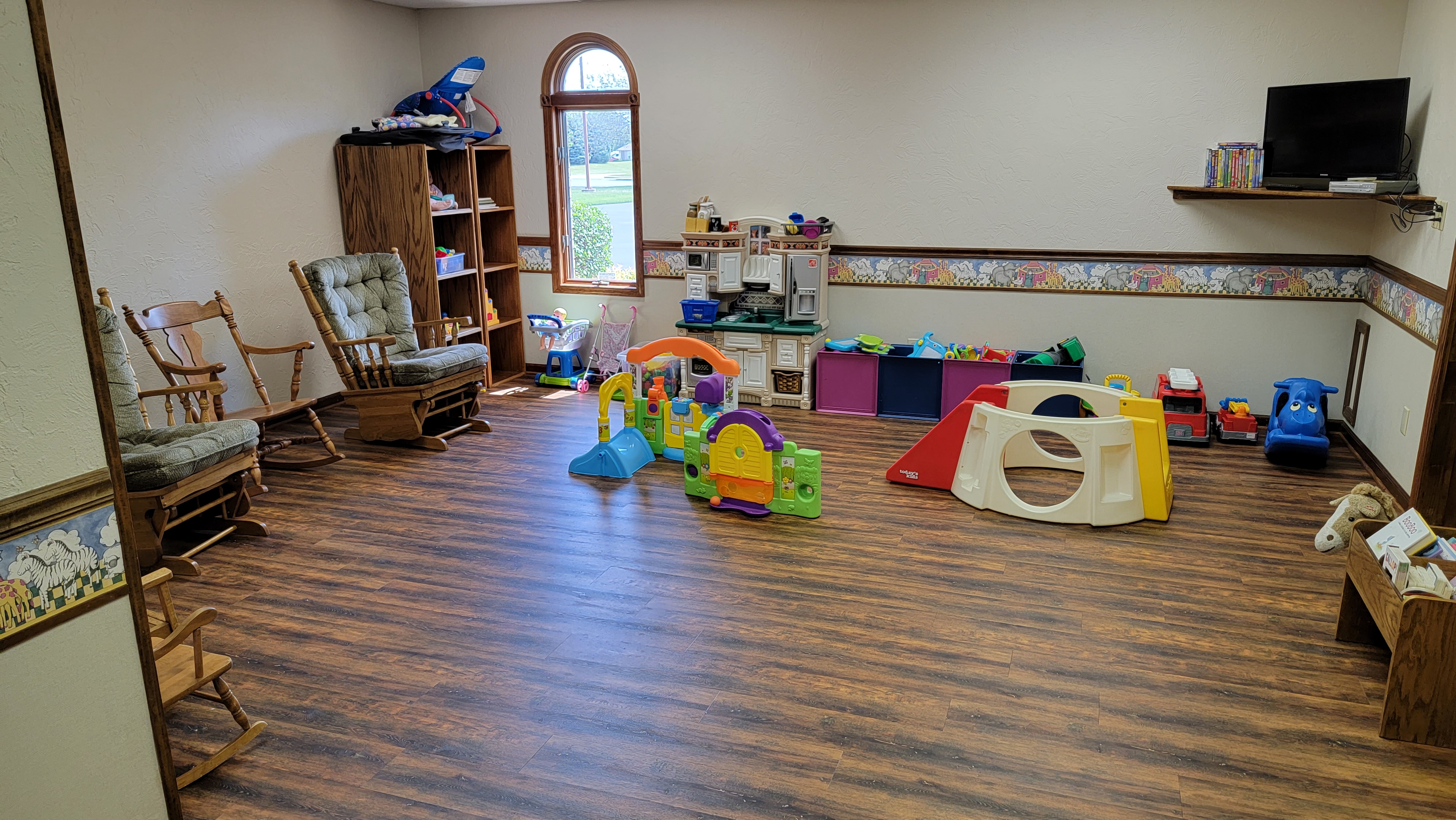 Nursery care is available for children under two or who are not yet potty trained during Sunday School and morning worship. Our preschool room is set up for kids who are potty trained but are not yet in Kindergarten. Children in Kindergarten through 5th grade attend the first part of the worship service and then leave for their own special worship time with Miss Jill!